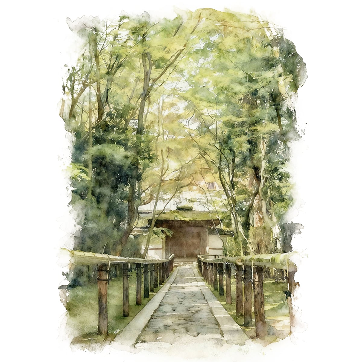絵画(風景画) 日本 京都府 大徳寺高桐院 インテリアアート額付き 水彩画・油絵調 WAT1190