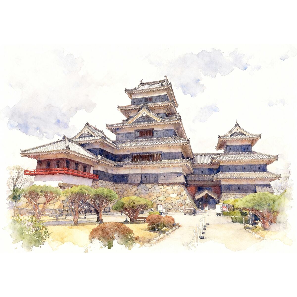 長野県の松本城は、戦国時代に築かれた現存する五重六階の天守を持つ日本最古の城の一つで、国宝に指定されています。黒と白の対比が美しい「烏城(からすじょう)」とも呼ばれ、優雅で力強い外観が特徴です。背景には北アルプスの山々が広がり、四季折々の風景と調和した景観が魅力です。春は桜、夏は新緑、秋は紅葉、冬は雪景色と、年間を通じて異なる表情を見せ、訪れる人々を楽しませてくれます。歴史と自然が融合した名城です。【商品仕様】