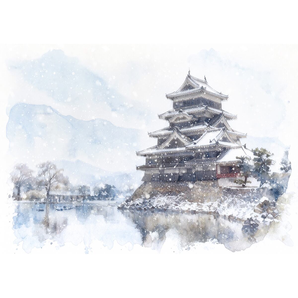 長野県の冬の松本城は、白く雪化粧をまとった黒い天守が際立ち、幻想的な美しさを見せる季節限定の絶景が魅力です。周囲の北アルプスも雪に覆われ、天守とともに荘厳な冬景色を演出します。澄んだ空気と静寂に包まれた城内では、歴史の重みとともに凛とした空気を感じられ、訪れる人々の心を引き締めてくれます。【商品仕様】
