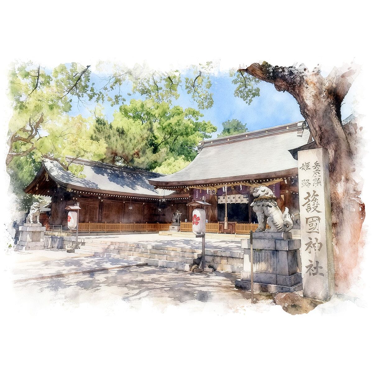 絵画 風景画(街並み) 日本 兵庫県 姫路護國神社 インテリアアート額付き 水彩画・油絵風 WAT1565