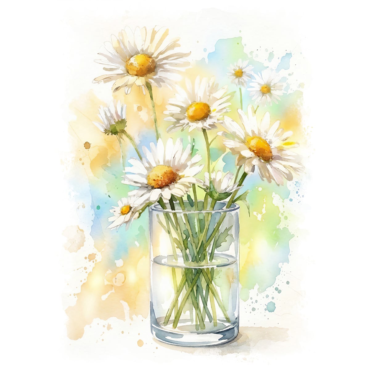 マーガレットは、清楚で可憐な白い花びらと中央の鮮やかな黄色が特徴の多年草です。花言葉に「真実の愛」や「信頼」を持ち、その純真な佇まいは古くから多くの人に愛されてきました。水彩画として部屋に飾るのがおすすめな理由は、その繊細な透明感にあります。水彩特有の柔らかなにじみや淡い色彩は、マーガレットの持つ優しさを最大限に引き出し、空間に穏やかな明るさと清潔感をもたらしてくれます。主張しすぎない控えめな美しさは、どんなインテリアにも馴染みやすく、見る人の心をそっと癒やす「心の安らぎ」として日常に彩りを添えてくれるでしょう。