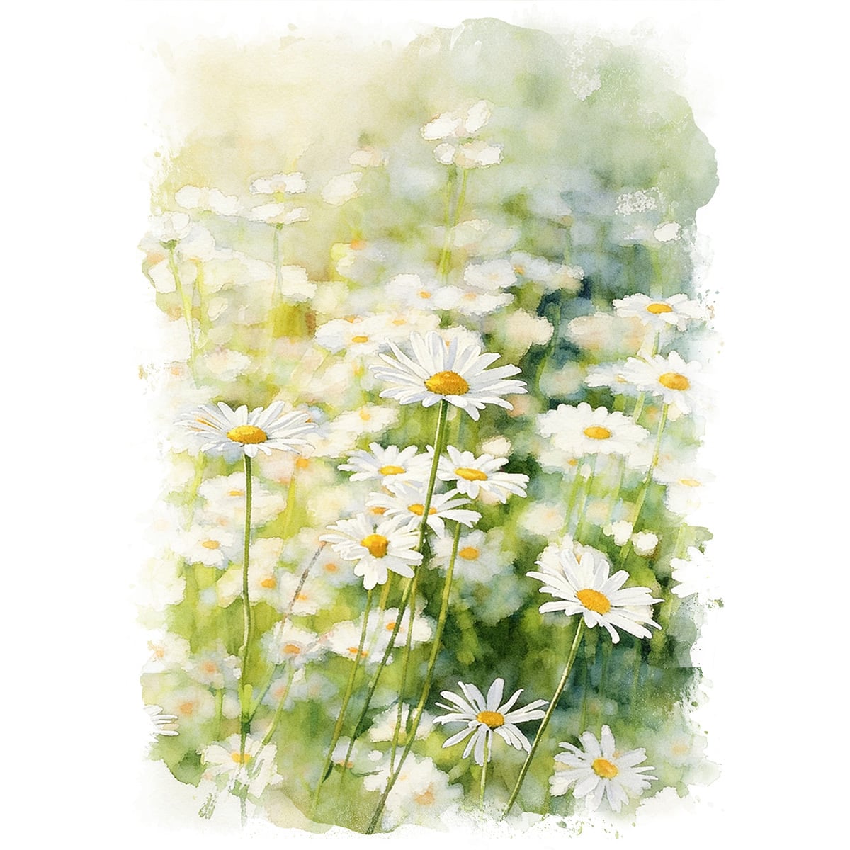 マーガレットは、清楚で可憐な白い花びらと中央の鮮やかな黄色が特徴の多年草です。花言葉に「真実の愛」や「信頼」を持ち、その純真な佇まいは古くから多くの人に愛されてきました。水彩画として部屋に飾るのがおすすめな理由は、その繊細な透明感にあります。水彩特有の柔らかなにじみや淡い色彩は、マーガレットの持つ優しさを最大限に引き出し、空間に穏やかな明るさと清潔感をもたらしてくれます。主張しすぎない控えめな美しさは、どんなインテリアにも馴染みやすく、見る人の心をそっと癒やす「心の安らぎ」として日常に彩りを添えてくれるでしょう。