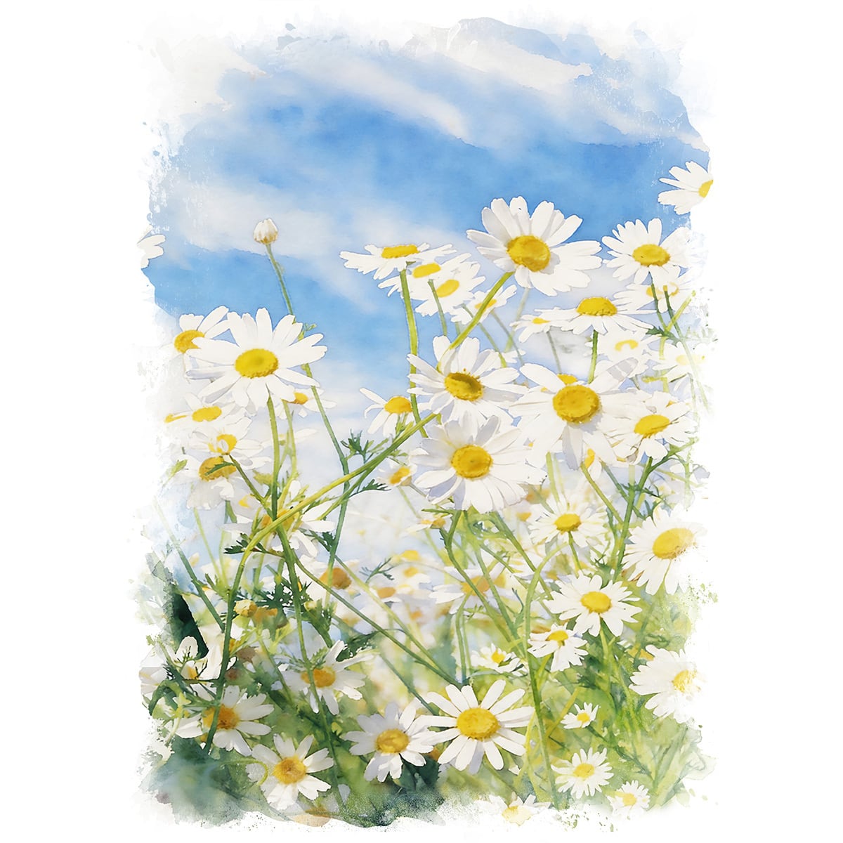 マーガレットは、清楚で可憐な白い花びらと中央の鮮やかな黄色が特徴の多年草です。花言葉に「真実の愛」や「信頼」を持ち、その純真な佇まいは古くから多くの人に愛されてきました。水彩画として部屋に飾るのがおすすめな理由は、その繊細な透明感にあります。水彩特有の柔らかなにじみや淡い色彩は、マーガレットの持つ優しさを最大限に引き出し、空間に穏やかな明るさと清潔感をもたらしてくれます。主張しすぎない控えめな美しさは、どんなインテリアにも馴染みやすく、見る人の心をそっと癒やす「心の安らぎ」として日常に彩りを添えてくれるでしょう。