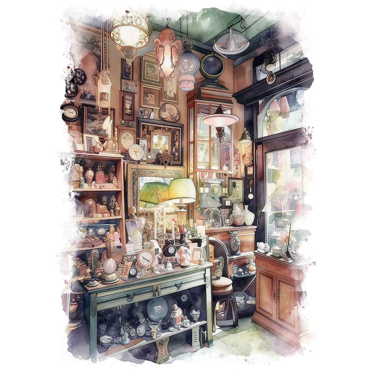 絵画 街の風景画 とある街の雑貨屋 インテリアアート額付き 水彩画・油絵風 WAT0025