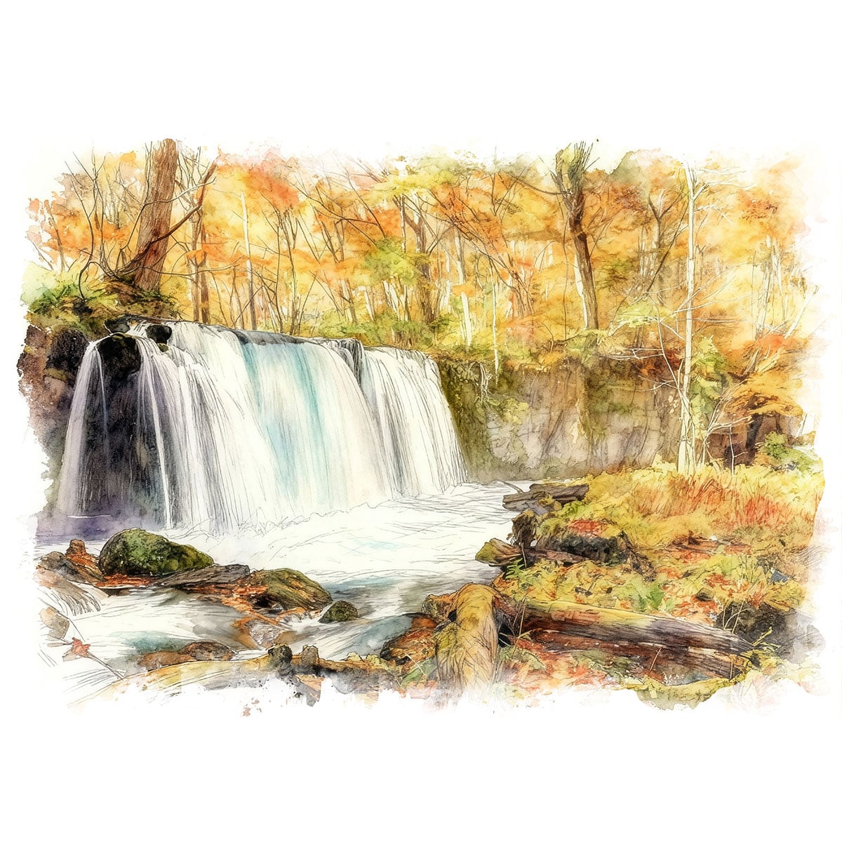 絵画 日本 錦秋の奥入瀬渓流 銚子大滝の風景 インテリアアート額付き 水彩画・油絵風 WAT0091