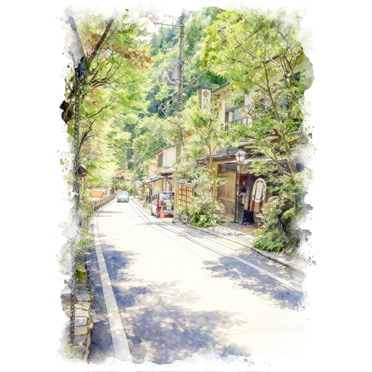 絵画 日本 京都府 貴船神社 風景画 インテリアアート額付き 水彩画・油絵風 WAT0178