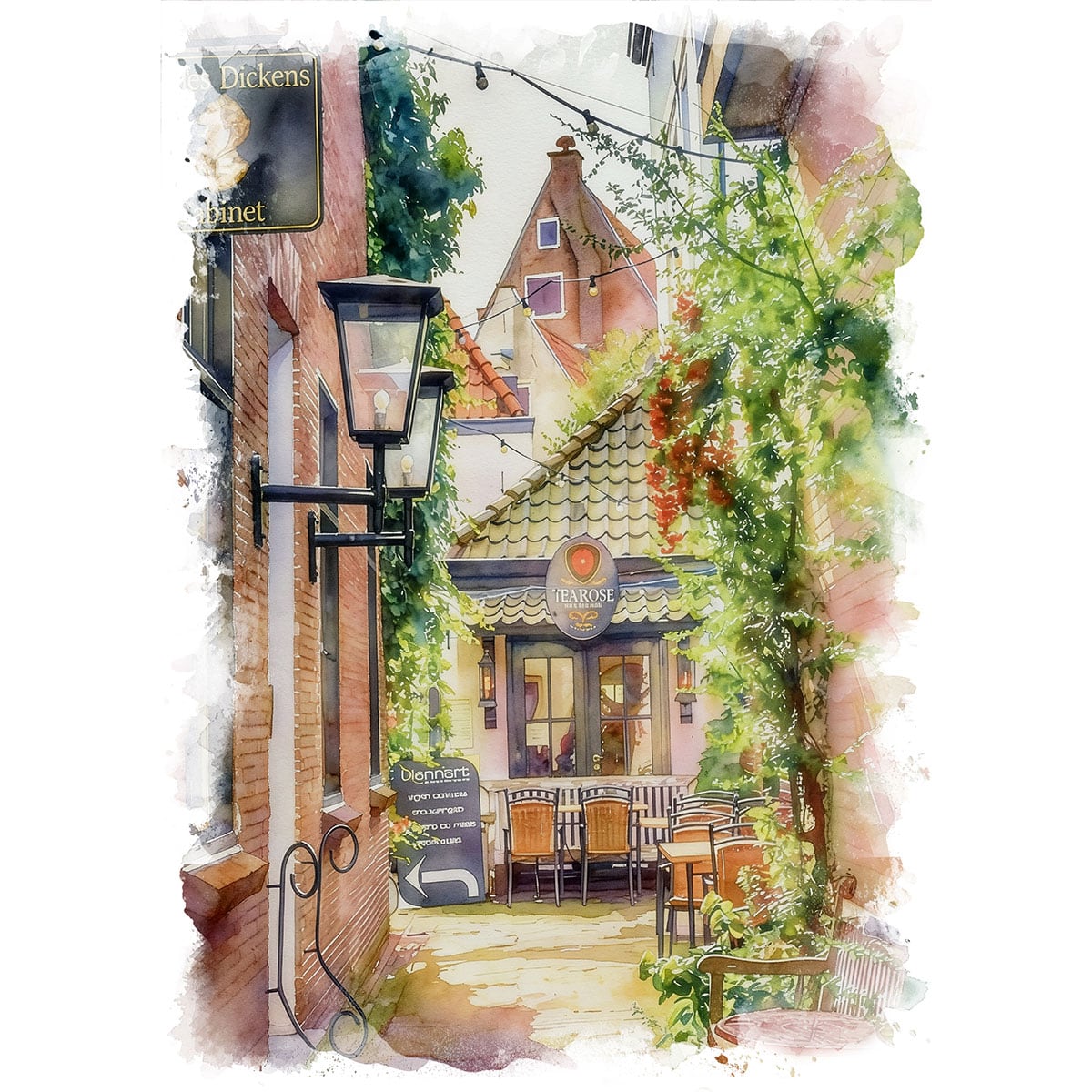 絵画 オランダ 風景画(街並み) デーフェンターのレストラン インテリアアート額付き 水彩画・油絵調 WAT0296
