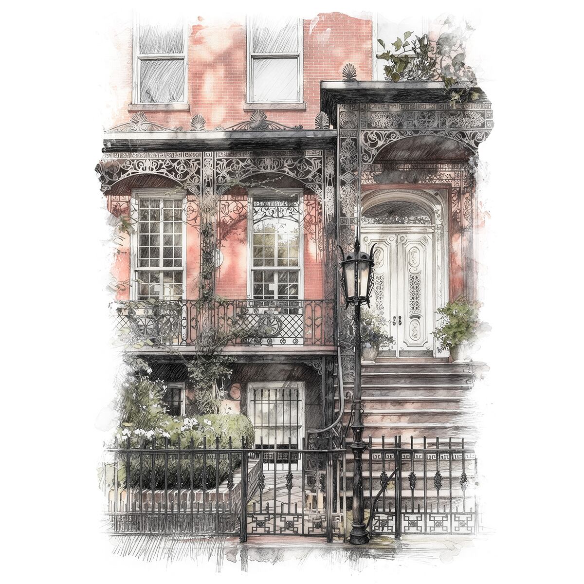 絵画 アメリカ 風景画(街並み) ニューヨーク グラマシーパークウェスト4番地 インテリアアート額付き 水彩画・油絵調 WAT0360