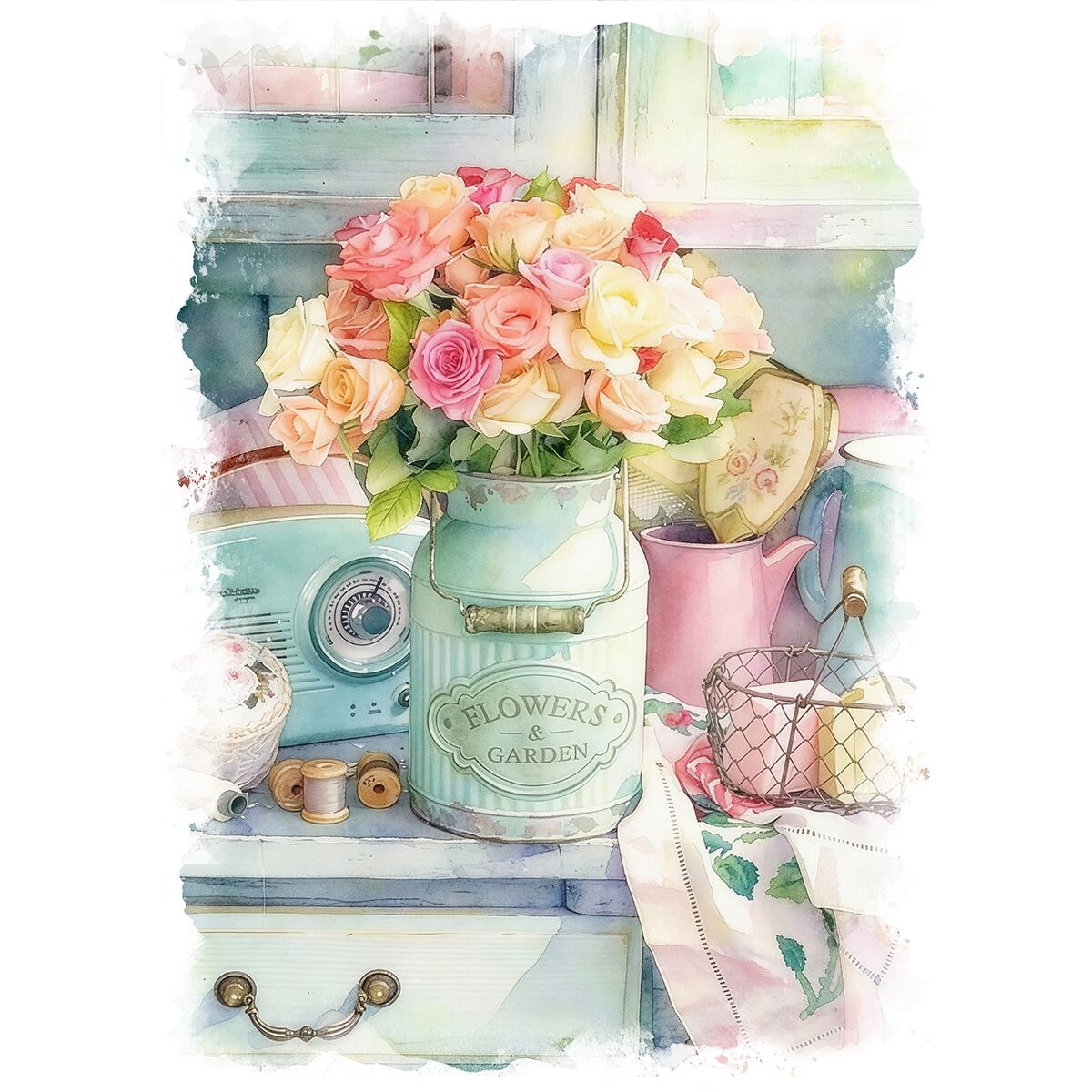 絵画 花の絵 インテリアアート額付き 水彩画・油絵調 WAT0391