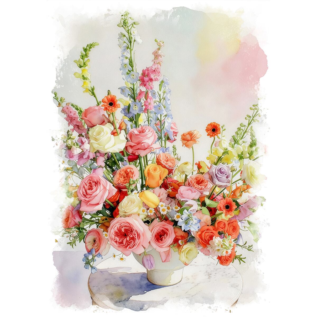 花を描いた絵画は、その華やかで繊細な美しさによって、見る者の心を惹きつけます。可憐な花々、豊かな色彩、そして生命力あふれる姿は、喜びや幸福感、そして自然の美しさを私たちに教えてくれます。また、それぞれの画家が持つ個性や時代背景、そして花が持つ象徴的な意味など、多様な要素が重なり合い、奥深い世界観を表現している点も魅力の一つです。花の絵画は、単なる自然の描写を超えて、人間の感情や思想を映し出す鏡のような存在かもしれません。