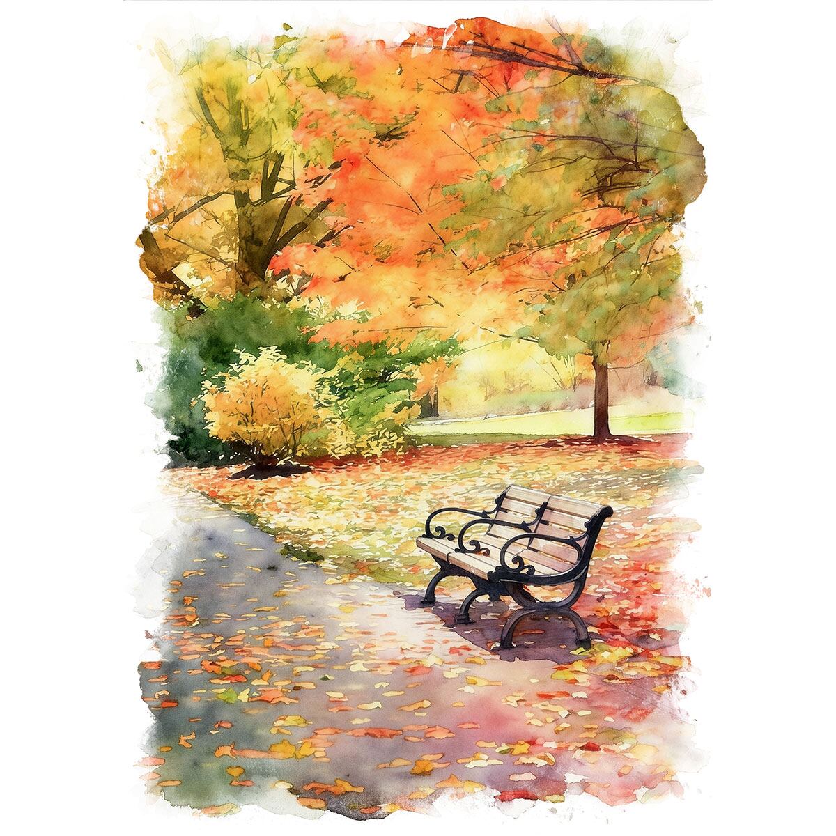 秋の風景を描いた絵画は、豊かな色彩と独特の雰囲気を通じて、紅葉の美しさや収穫の喜びを表現し、特に金色や赤、茶色の葉が織りなす風景は、見る人に温かさや懐かしさを与え、また、落ち葉の音や秋の澄んだ空気感を感じさせることで、自然の移ろいと共に心の平和をもたらし、季節の変化を深く感じさせる魅力を持っています。