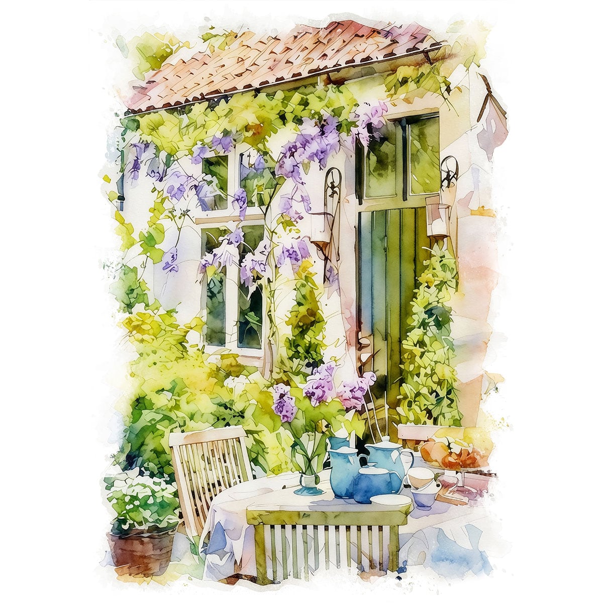 絵画 春の訪れ 木漏れ日の庭 インテリアアート額付き 水彩画・油絵調 WAT0573