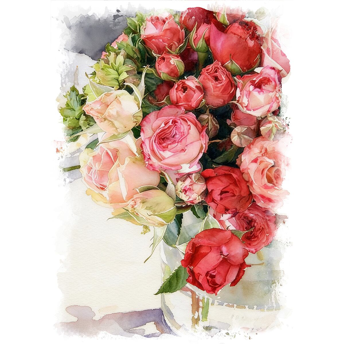 絵画 花(フラワー) 花瓶のバラ インテリアアート額付き 水彩画・油絵調 WAT0618