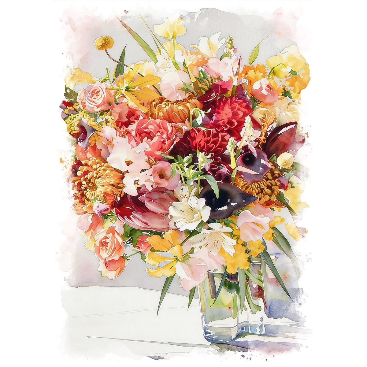 絵画 花(フラワー) フエゴダークとミモザの花束 インテリアアート額付き 水彩画・油絵調 WAT0663