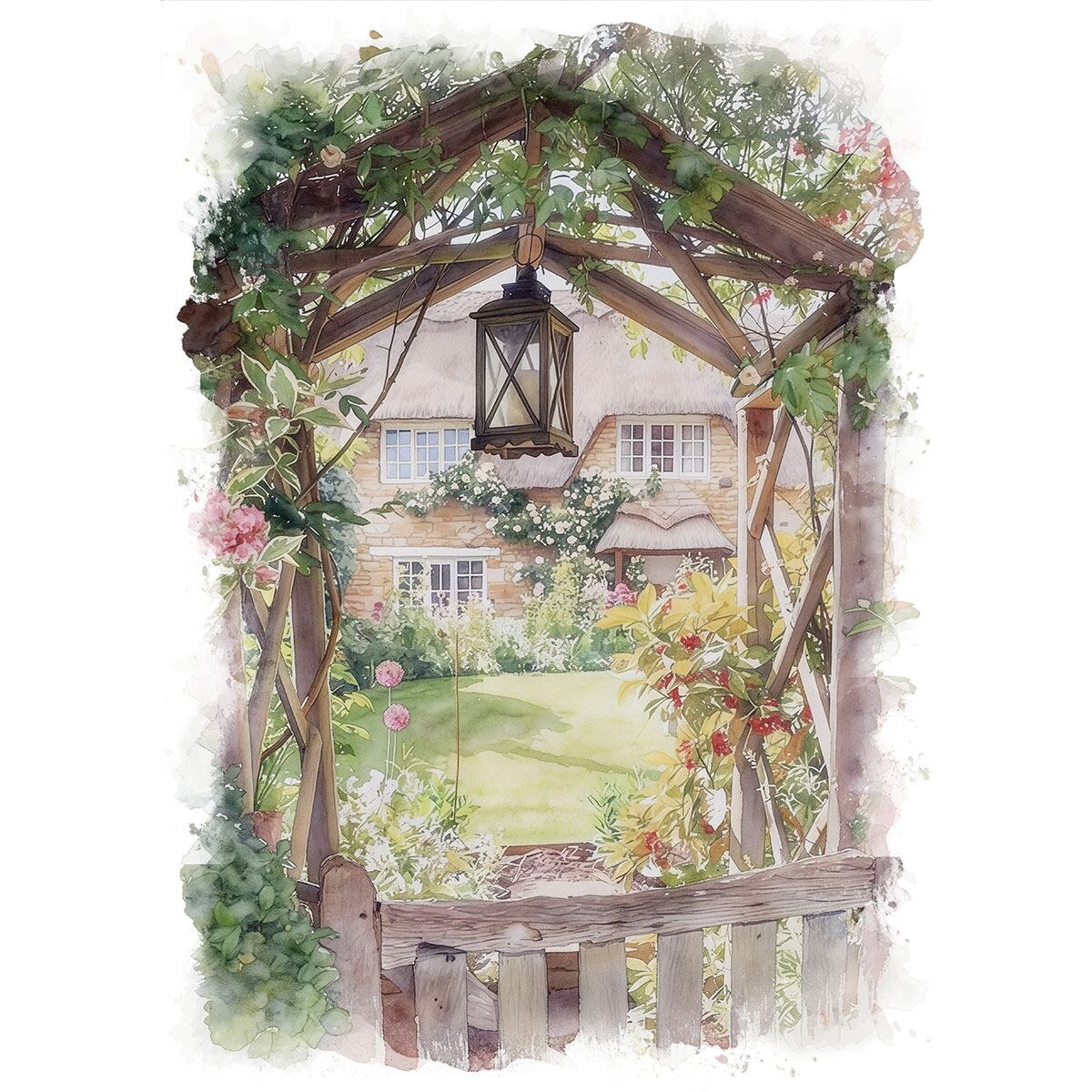 絵画 庭 庭園 インテリアアート額付き 水彩画・油絵調 WAT0708