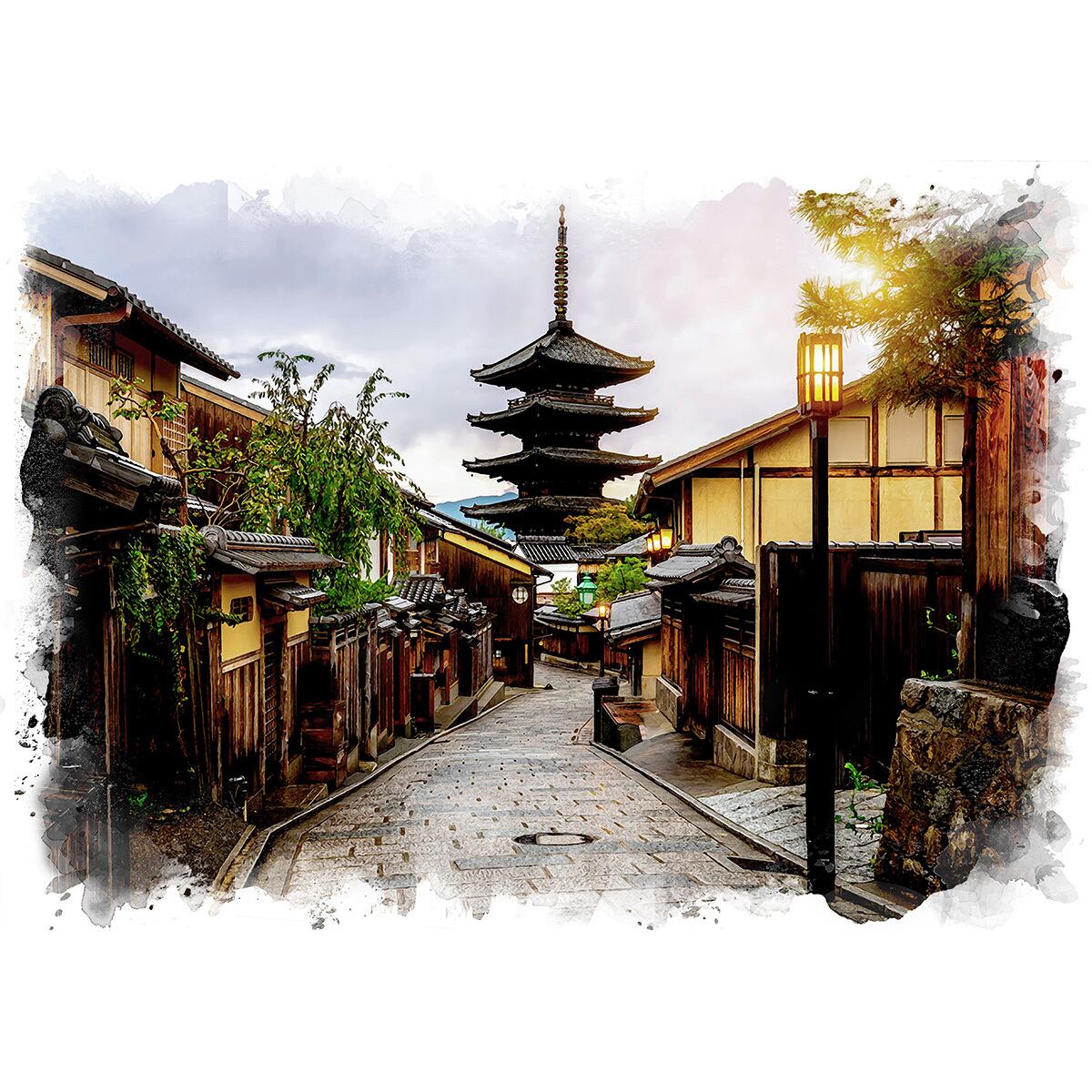 絵画(風景画) 日本 京都 八坂の塔 インテリアアート額付き 水彩画・油絵風 WAT0771