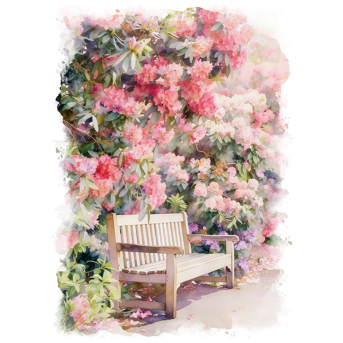 ベンチを取り囲むように咲く花は、自然と人間の調和を象徴し、観る者に安らぎと癒しを提供します。色とりどりの花々がベンチを囲む光景は、静かなひとときを楽しむ場所としての庭園の魅力を引き立て、日常の喧騒から離れて心を落ち着かせる力があります。