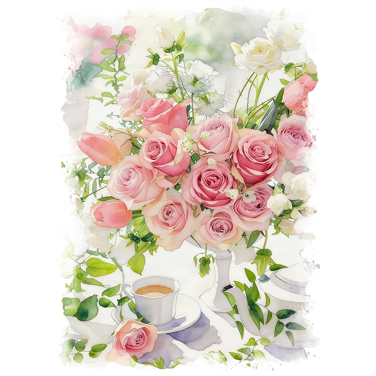 花瓶に生けられた花をモチーフにした絵画は、その繊細な美しさや、画家が込めた様々な想いを私たちに伝えてくれます。例えば、静物画では、光の当たり方や花の質感、色彩の対比などが細やかに表現され、まるで花が目の前にあるかのような臨場感を味わえます。また、印象派の絵画では、光の変化を捉え、花の色や形が瞬く間に変化するように描かれることで、生命力あふれる花の姿が表現されています。さらに、花の種類や配置、背景の色などによって、喜び、悲しみ、静けさなど、様々な感情が読み取れることも魅力の一つです。