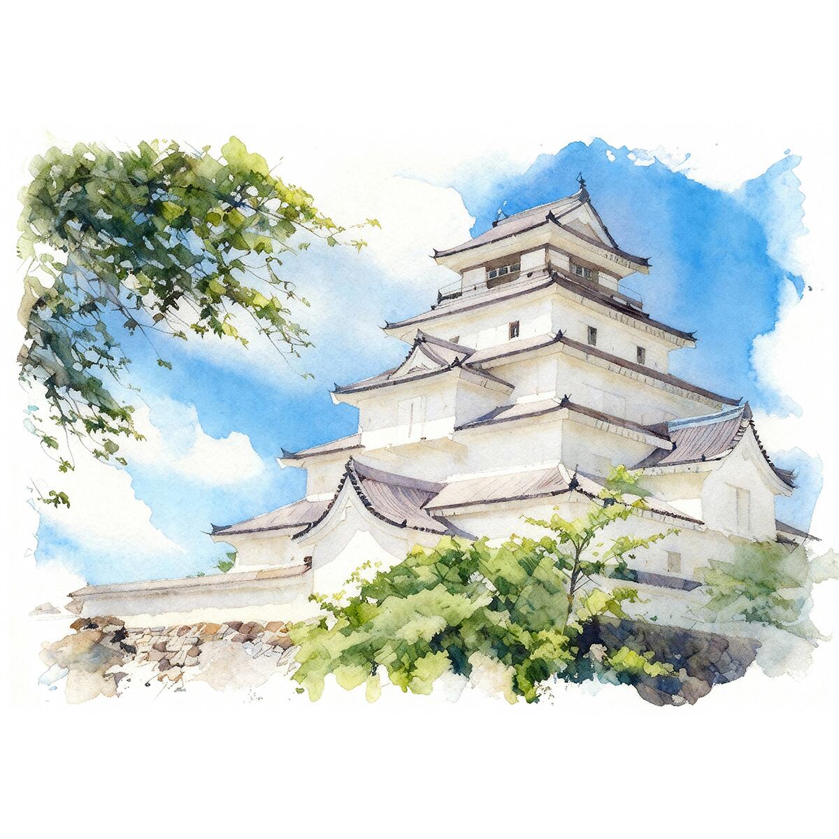 絵画 風景画 日本の城 福島県会津若松城(鶴ヶ城) インテリアアート額付き 水彩画・油絵風 WAT0946