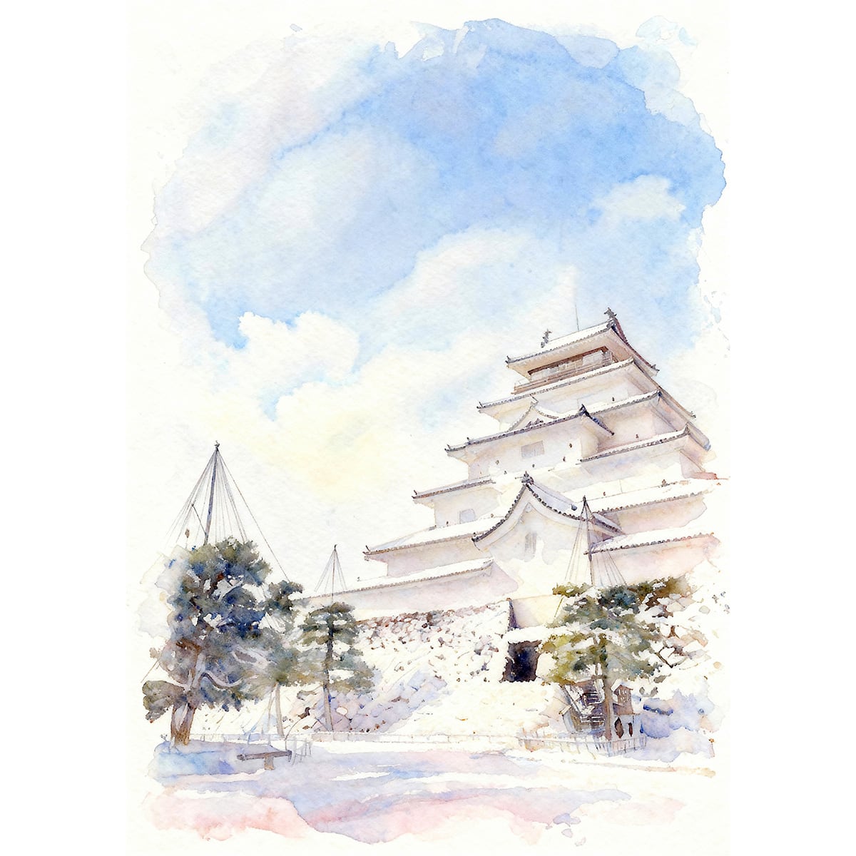 絵画 風景画 日本の城 福島県会津若松城(鶴ヶ城) インテリアアート額付き 水彩画・油絵風 WAT0947