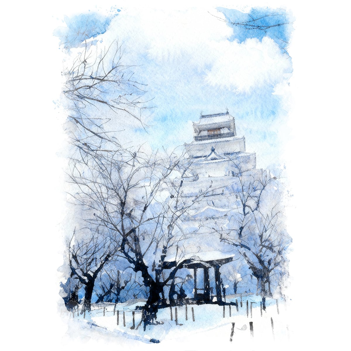 絵画 風景画 日本の城 福島県会津若松城(鶴ヶ城) インテリアアート額付き 水彩画・油絵風 WAT0948