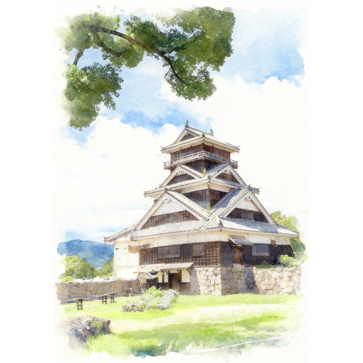 絵画 風景画 日本の城 熊本県熊本城 インテリアアート額付き 水彩画・油絵風 WAT0965